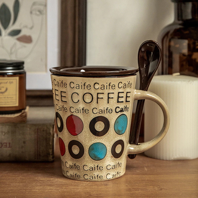 Medieval Gothic Ceramic Latte Mug with Lid & Spoon - For Office & Home