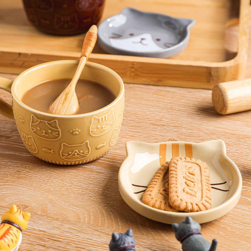 ・ペアスタイル:ペアセットの場合、2つのカップは同じ子猫のモチーフでも、異なるポーズや対照的な色(例:黒猫と白猫)で描かれ、甘い絆を象徴します。