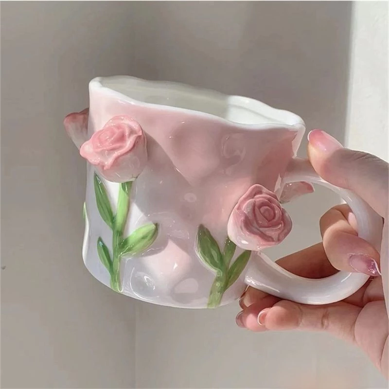 この「スズラン&バラ浮き彫りプレミアムセラミックマグカップ」は、単なる飲み物の容器ではなく、芸術作品としての価値を持つ逸品です。