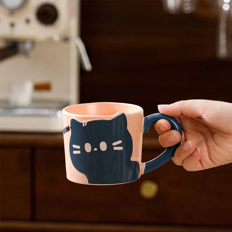 可愛い猫のペアマグカップ(青&ピンク)親友・カップルへの誕生日プレゼントに!アニメ風セラミックカップの通販・個人輸入代行販売商品