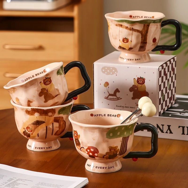 • ダイナミックな構図:モチーフは動きのある配置で、木馬が片側にわずかに傾いており、カップを持つたびにまるで実際に揺れているかのような感覚を与えます。
