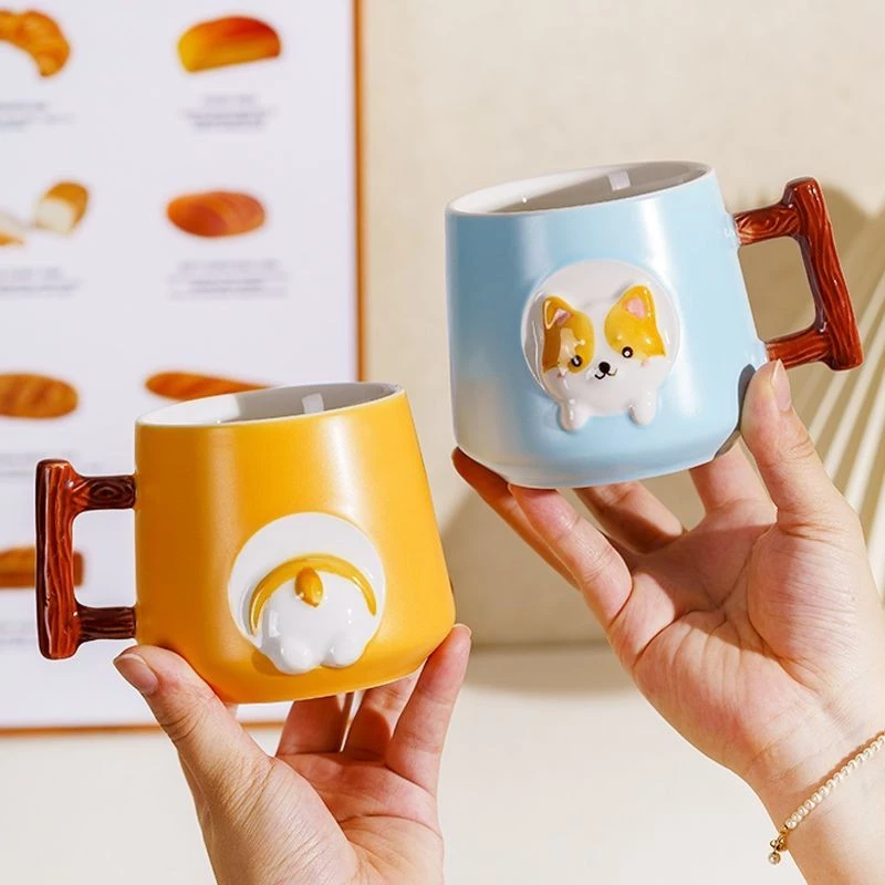 可愛いキャラクター黄色のセラミックマグカップ 400ml ペア対応 学生・家族・カップルにの通販・個人輸入代行販売商品