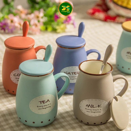 “Water Blue” Classic Pattern 400ml Ceramic Mug with Lid and Spoon