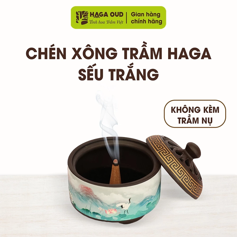 HAGA Classic White Crane/Lotus Agarwood Incense Burner, Premium Enamel Finish