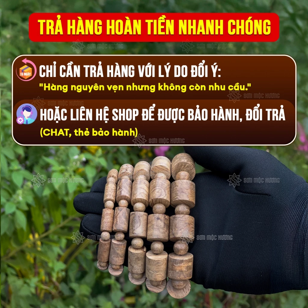 「Sơn Mộc Hương」では、原材料の選定から加工、仕上げまで、一つ一つ丁寧に手作業で制作しております。直接山林から仕入れた天然沈香を使用し、中間業者を挟まないことで、お客様に最高の品質と適正な価格でお届けすることを約束いたします。このブレスレットは、身につける方の日常に、優雅さと幸運をもたらす逸品です。