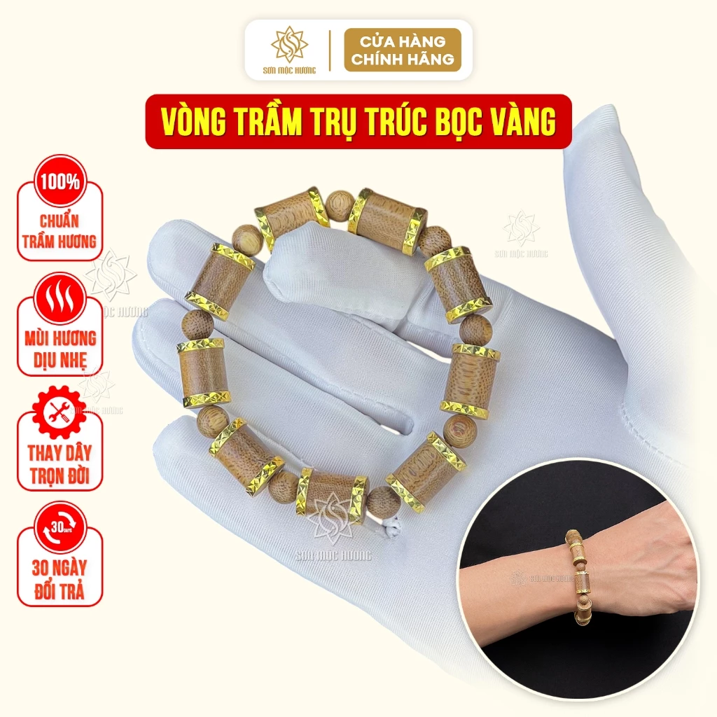 Son Moc Huong Gold-Plated Bamboo Agarwood Bracelet for Men & Women - Feng Shui Lucky Charm