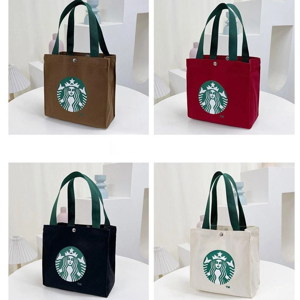 Starbucks Print Large Capacity Lunch Bag Red Oxford Fabric Portable Waterproof Tote Bag