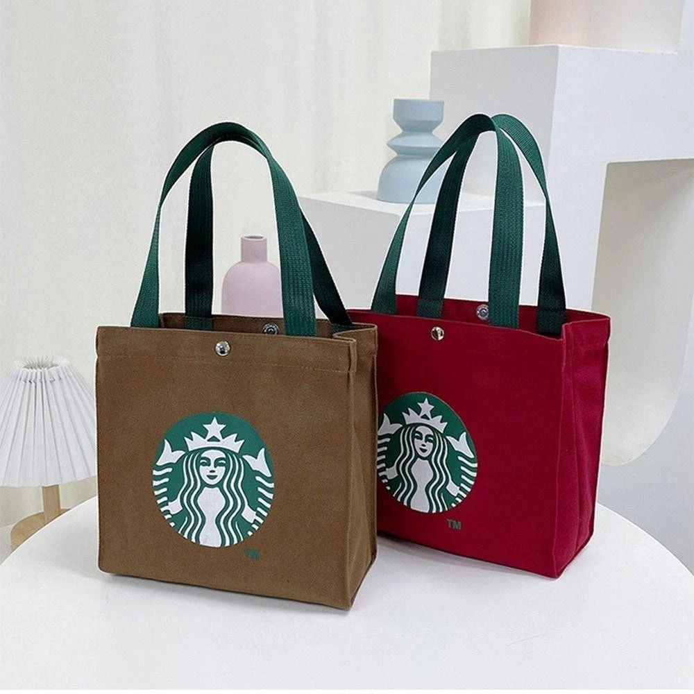 GAOSU Starbucks Pattern Nylon & Oxford Fabric Tote Bag Beige Waterproof Large Capacity Lunch Bag Outdoor Fashion