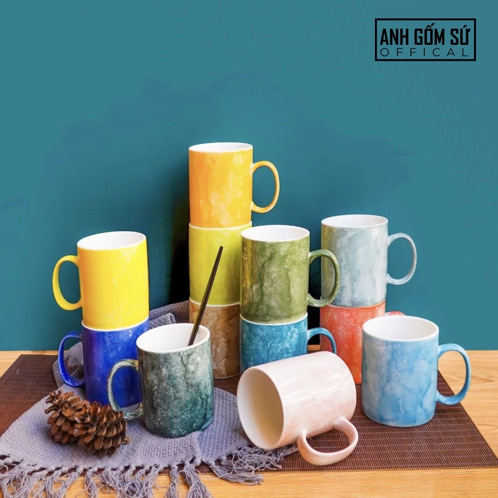 Bat Trang Genuine Stone Glaze Ceramic Mug - 330ml Orange Cup for Water, Tea, Coffee, Gift