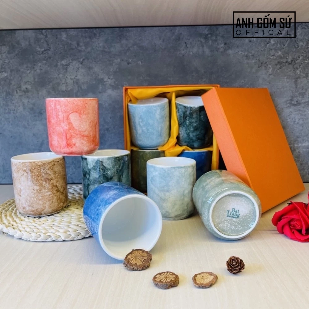 Bat Trang Cylindrical Stone Glaze Ceramic Cup 200ml (Blue) - Premium Vietnamese Tableware