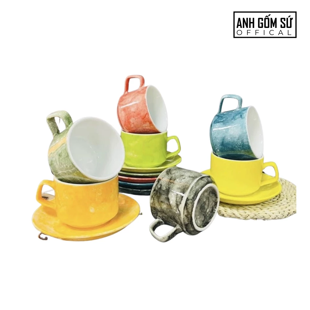High-Grade Bat Trang Marble Pattern Ceramic Coffee Cup - 250ml Chrome Blue Jade