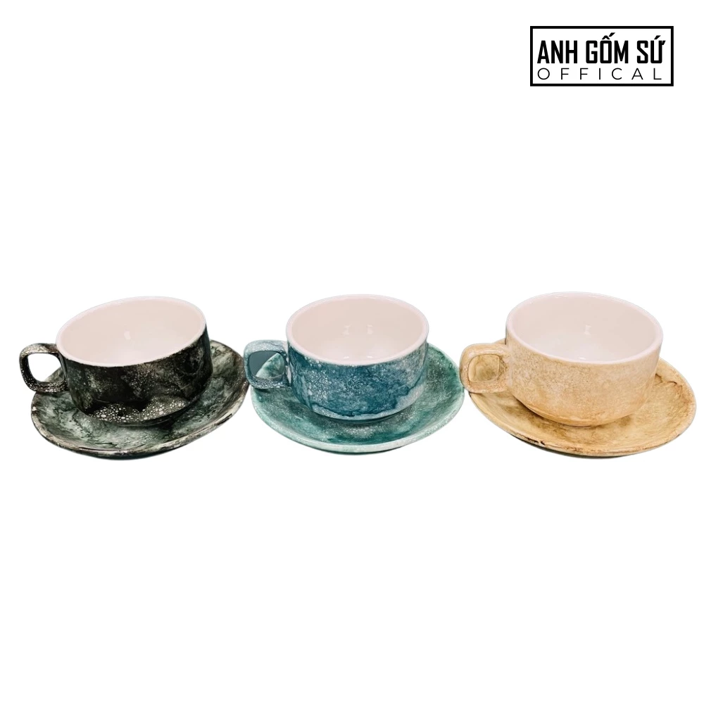 Premium Bát Tràng Ceramic Stone-Pattern Coffee Cup 150ml Grey