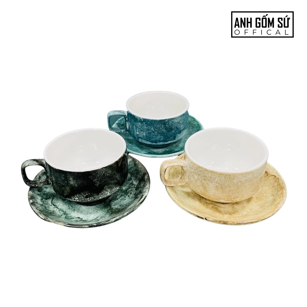 Bat Trang Premium Stone Pattern Ceramic Mug 150ml - Blue-Green Coffee & Latte Art Cup
