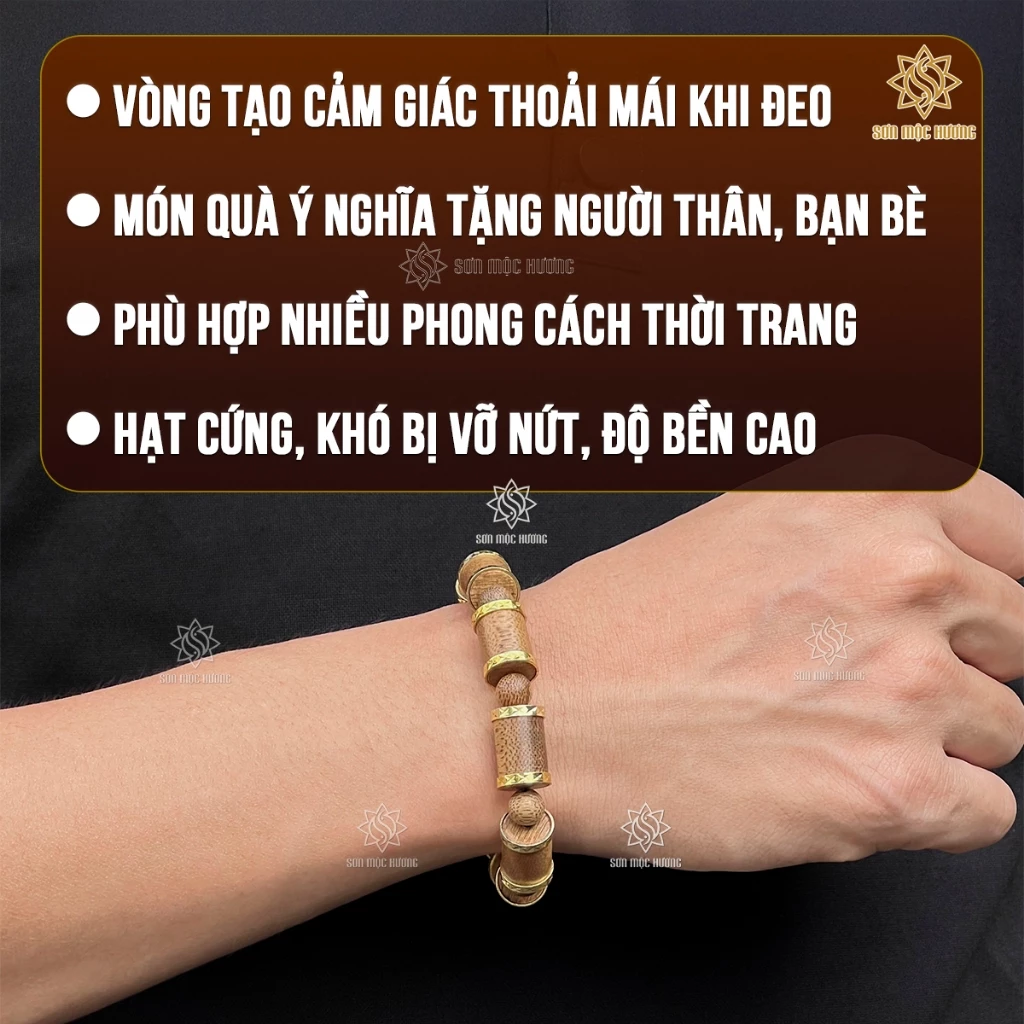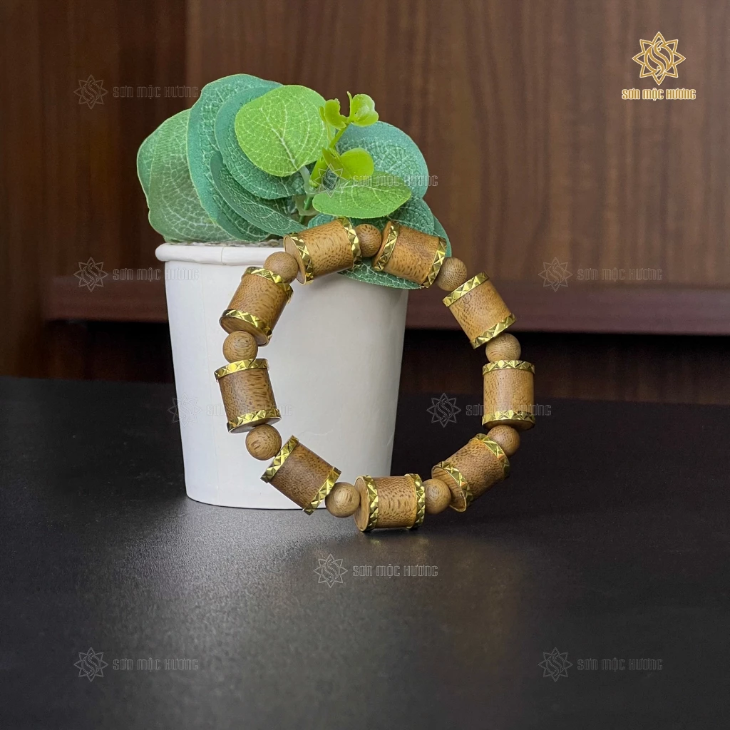 Sơn Mộc Hương Agarwood Bamboo Cylindrical Bracelet Gold-Plated Unisex Feng Shui Lucky Charm