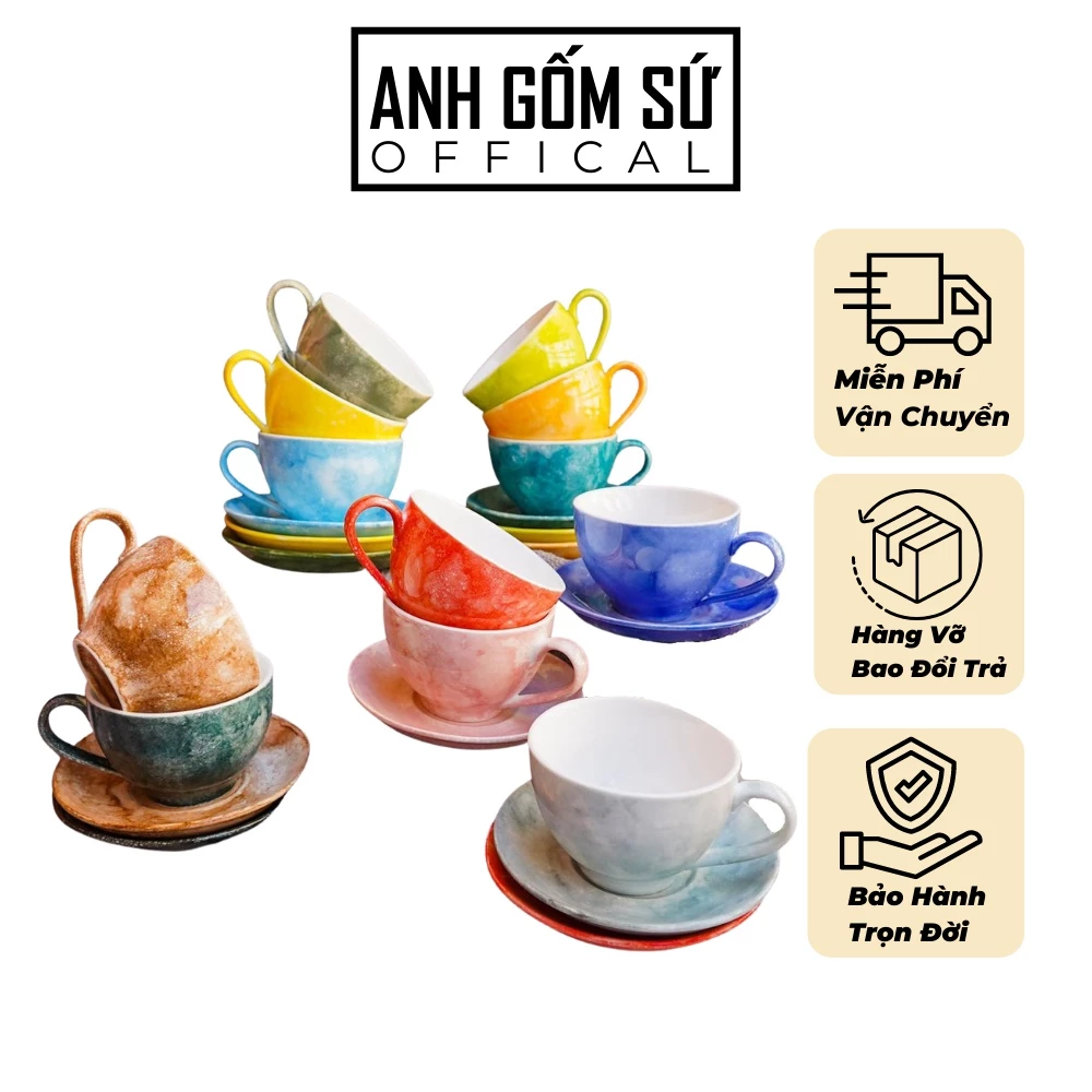 Bát Tràng Genuine 220ml Unique Marble Stone Glaze Cappuccino Ceramic Cup - Marble Pattern