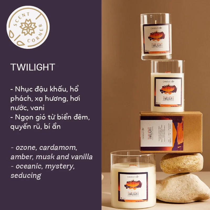 純粋なヴィーガン処方:100%パームワックス、高濃度のエッセンシャルオイル(キャンドルカップあたり14%)、不純物のない100%コットン芯、またはアメリカから直輸入されたオリジナルのウッド芯を使用。