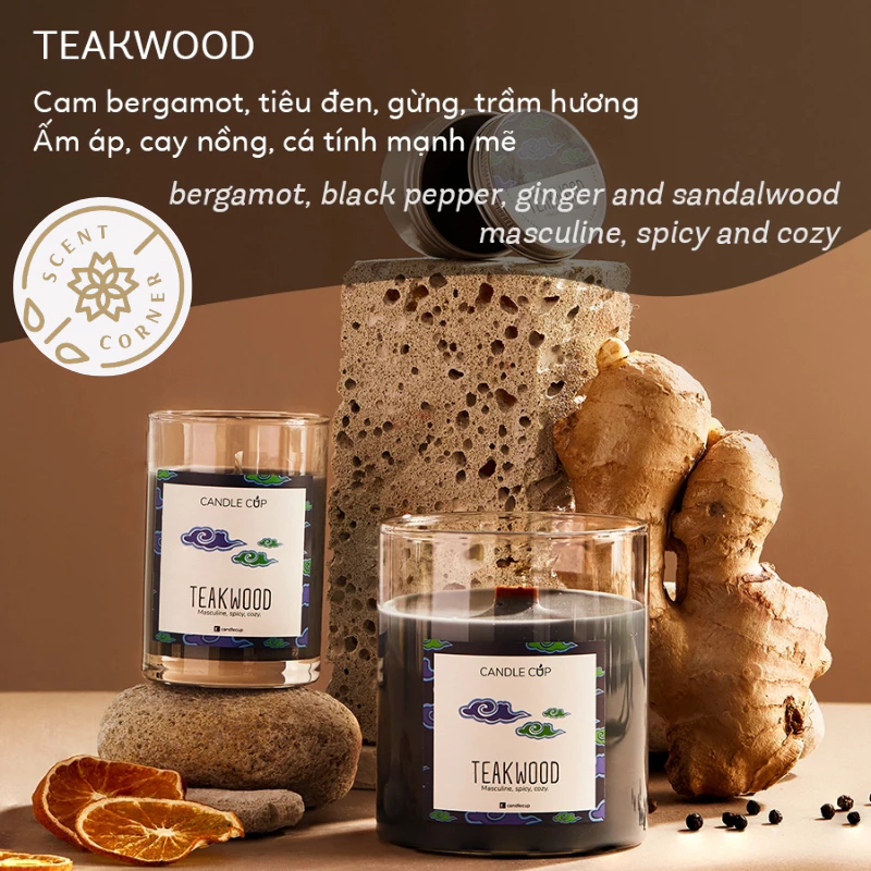 - Teakwood: お香、ベルガモット、ジンジャー、ブラックペッパー (暖かく、スパイシー、個性的)