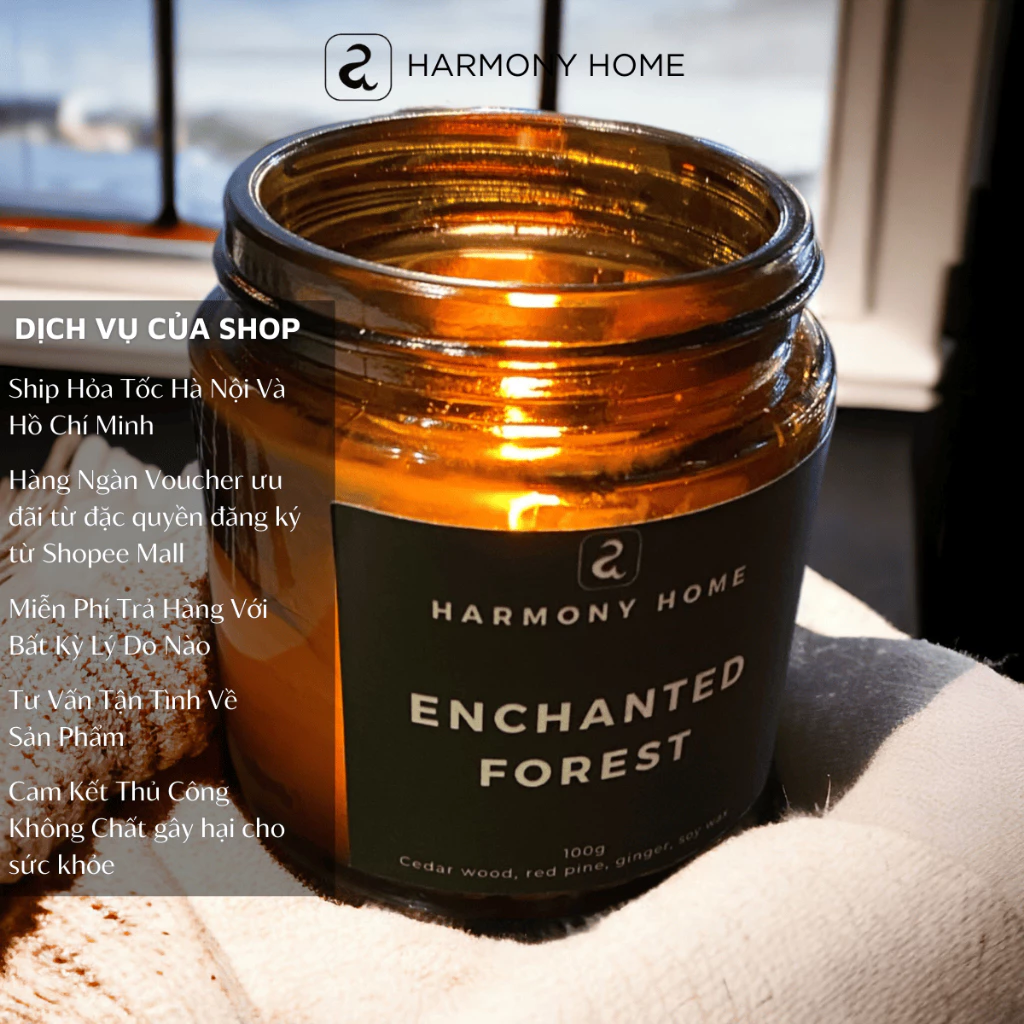 ハーモニーホーム Enchanted Forest [A] アロマキャンドル – シダーウッド、レッドパイン、ジンジャーの香り 100g 天然ワックスの通販・個人輸入代行販売商品