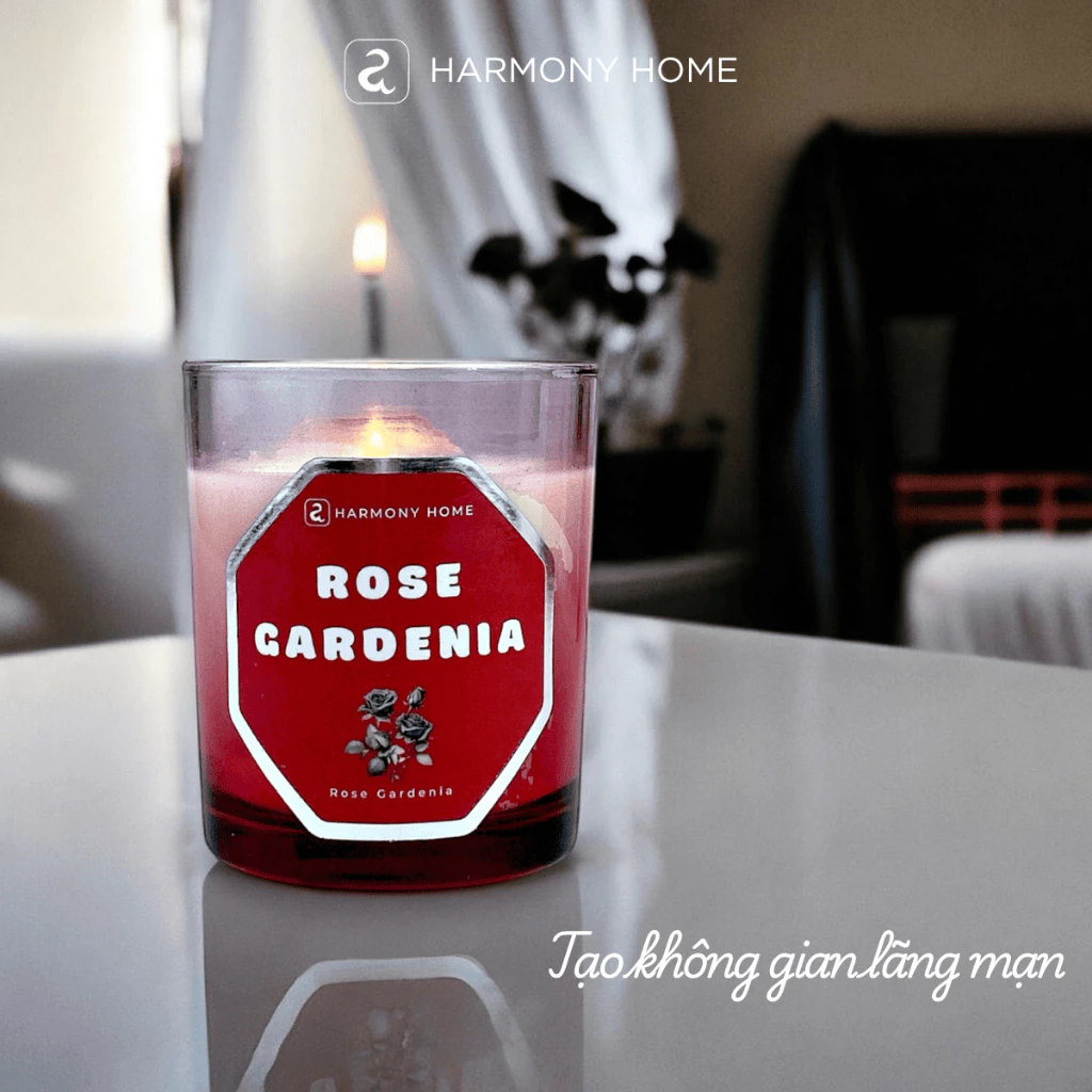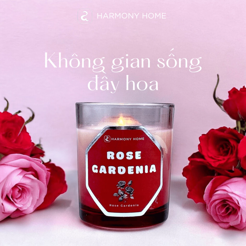 Harmony Home Rose Gardenia Scented Candle [A] - Imported Rose Fragrance, Natural Wax, 150g Jar