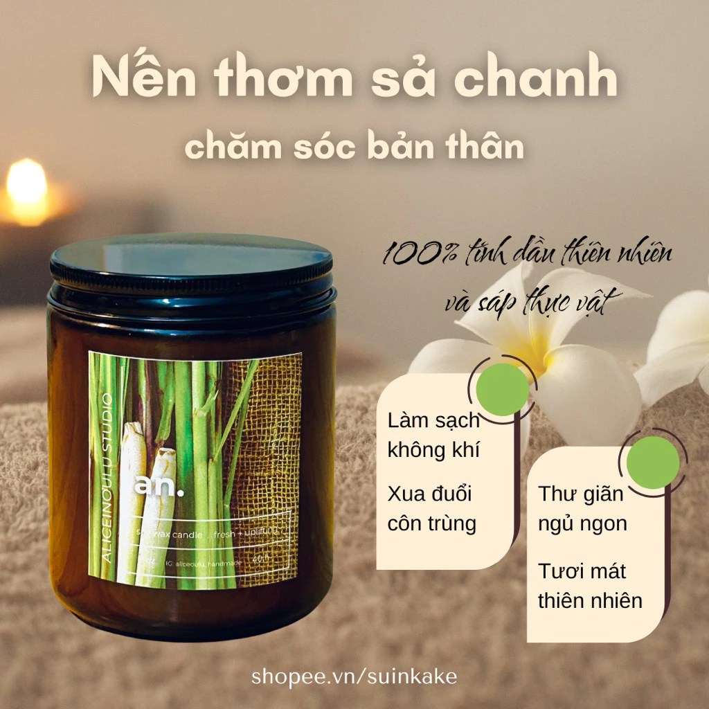 「AiO 天然アロマキャンドル『An.』レモングラス 50g」は、安らぎと静けさを追求した、心身に優しいアロマキャンドルです。ブランド名「AiO ( Thiên nhiên AiO )」が示す通り、厳選された天然成分のみを使用し、ご自宅で本格的なスパ体験をお届けします。