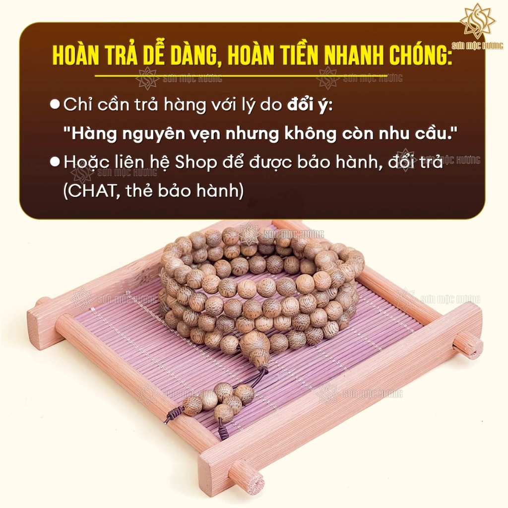 Son Moc Huong Agarwood 108-Bead Bracelet (6/7/8mm) for Peace, Prosperity, Wealth & Luck