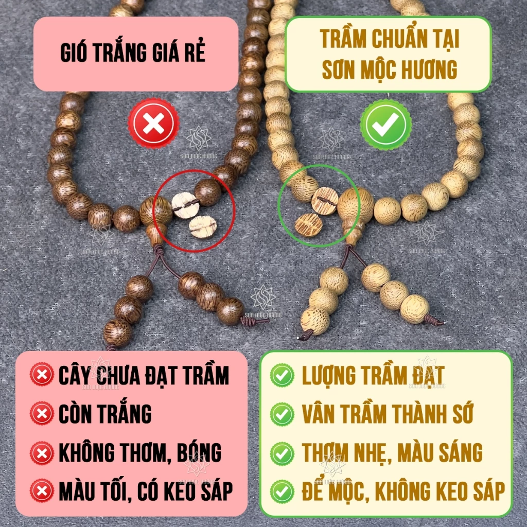 Sơn Mộc Hương Agarwood Bracelet 108 Beads 6mm/7mm/8mm - Unisex Feng Shui Lucky Fortune Charm