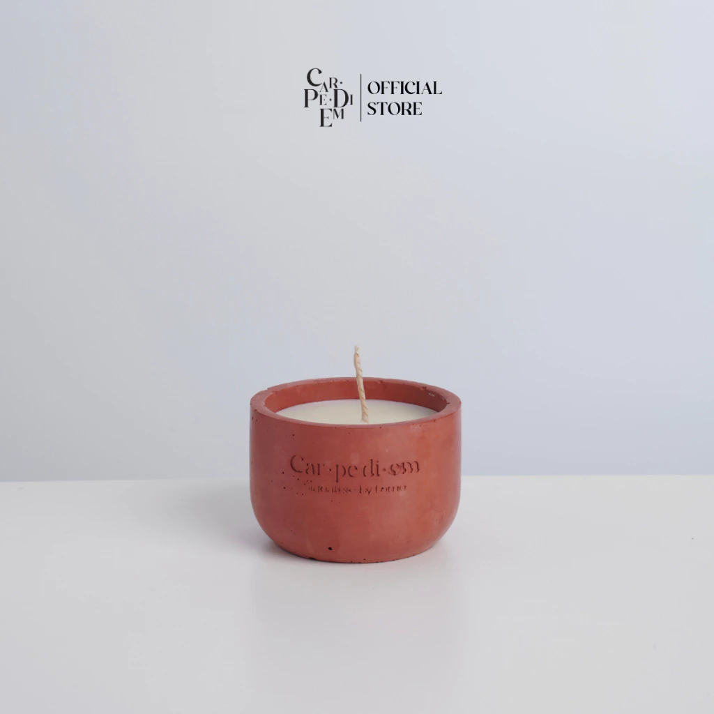 カルペディエム 手作りアロマキャンドル『VÂN SAM(モミの木)』赤いセメントポット入り ウッディな香りの通販・個人輸入代行販売商品
