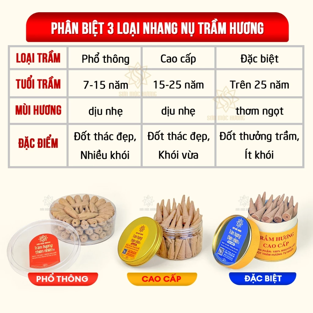 かつては沈香をそのまま焚いていましたが、多くの煙と原料の無駄が生じていました。Sơn Mộc Hươngは、より便利で効率的なお香コーンを開発し、直接火をつけるだけでゆっくりと燃焼し、心地よい香りを空間に広げます。