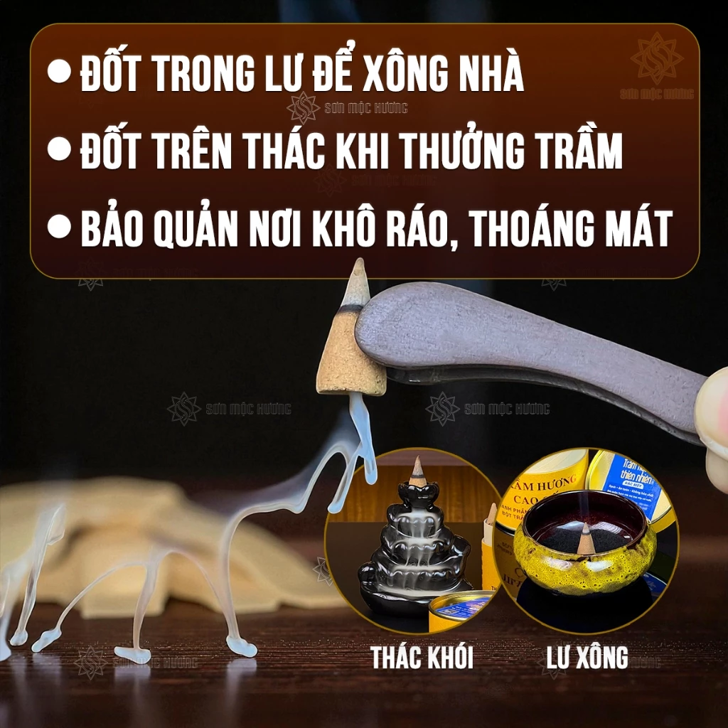 Son Moc Huong Special Agarwood Cone Incense - Natural Aroma, Home Purification & Feng Shui Fragrance