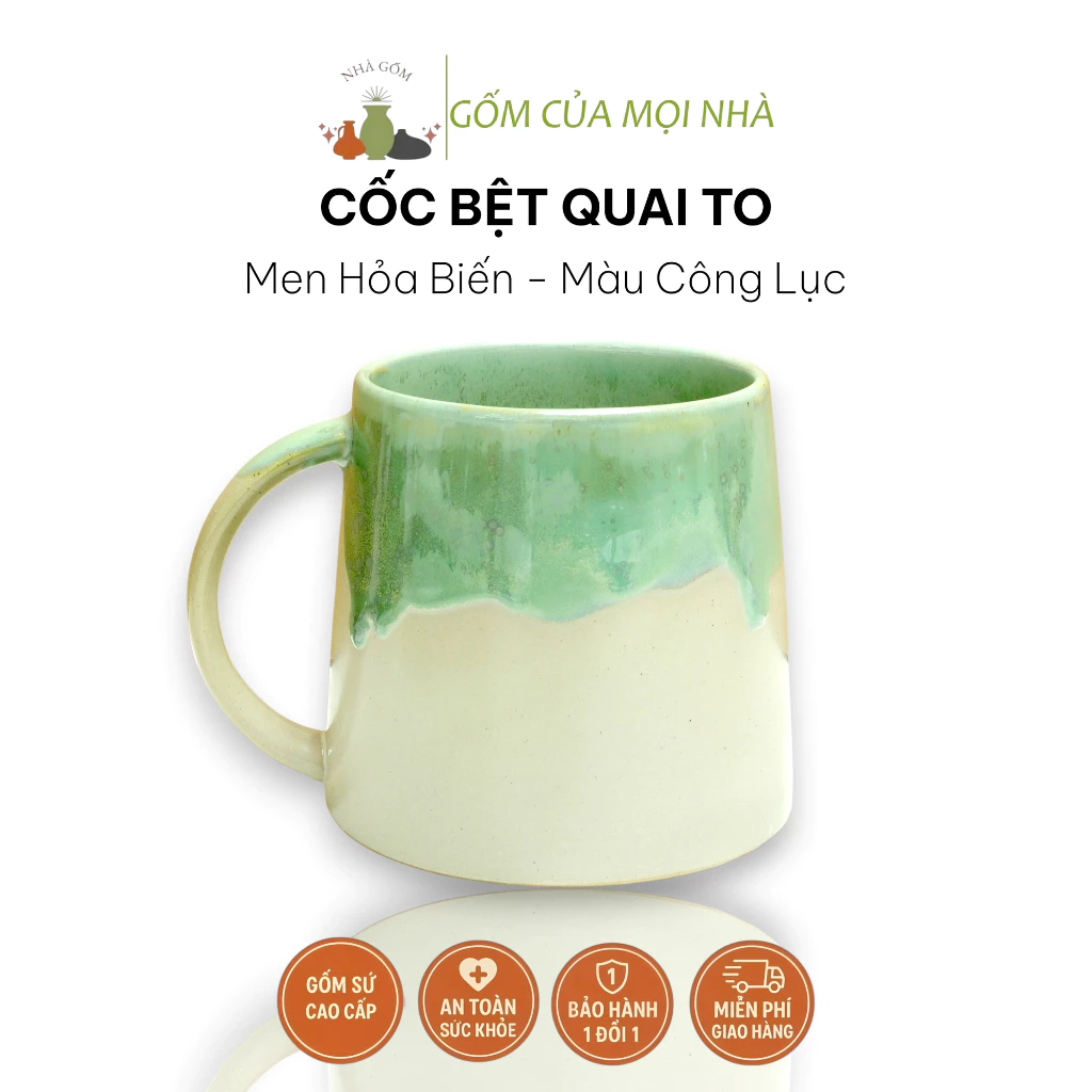 Bát Tràng Ceramic Wide Mug 500ml with Large Handle - Stable & Versatile for Beer, Coffee, Tea, Water