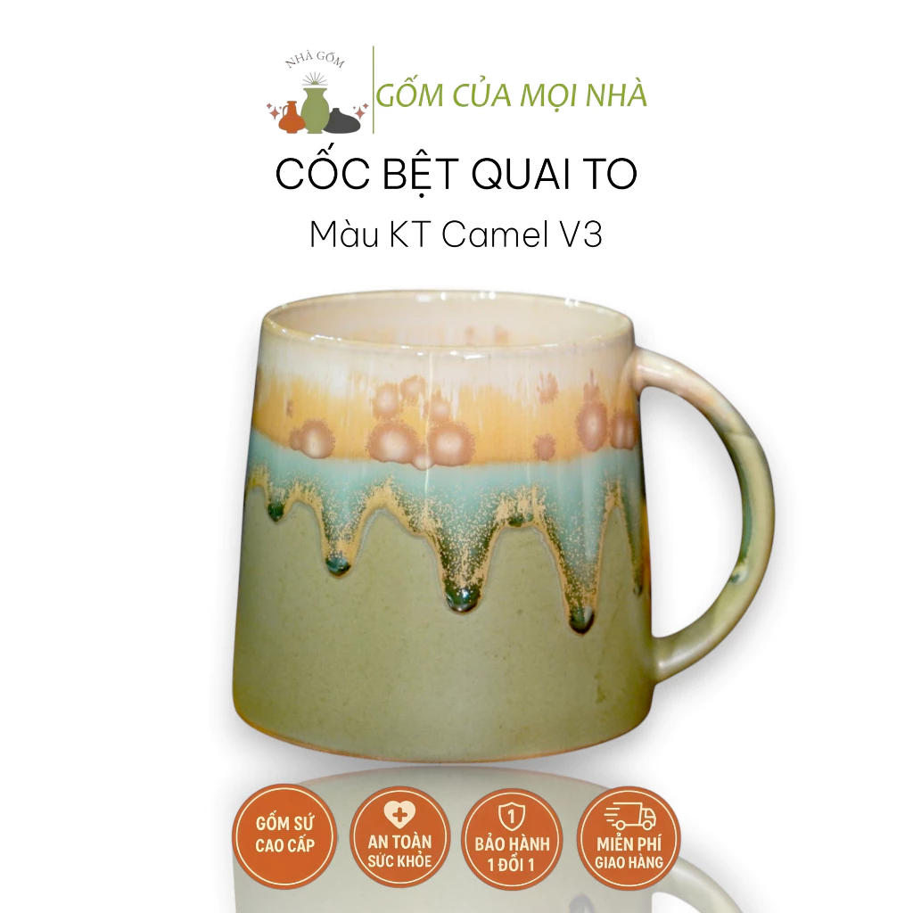 Bat Trang Ceramic Mug with Wide Handle, 500ml, Stable, for Beer, Coffee, Tea, Water - KT Camel V3