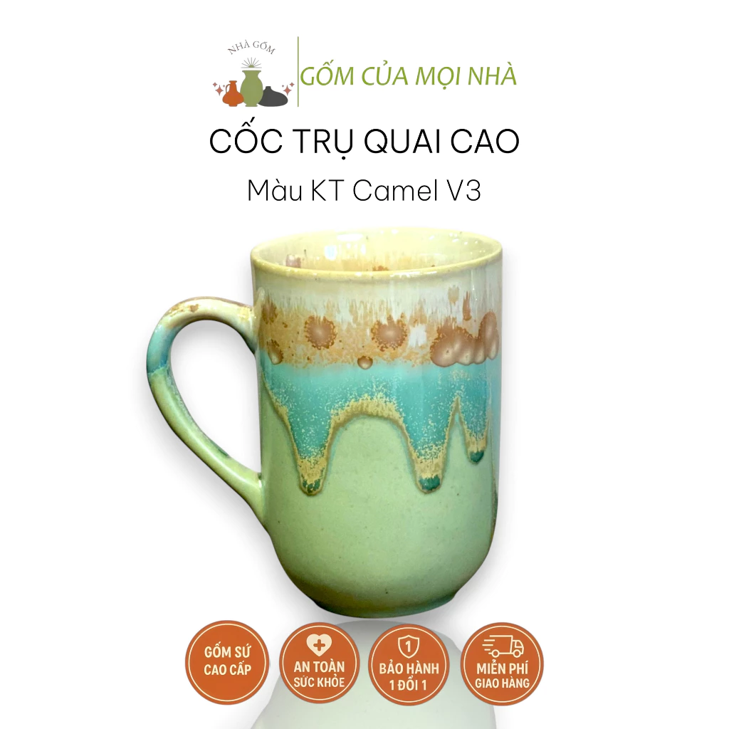 Bat Trang Ceramic Flame-Glazed Mug 250ml KT Camel V3 - Office Heat-Retaining Pottery Cup for Tea & Coffee