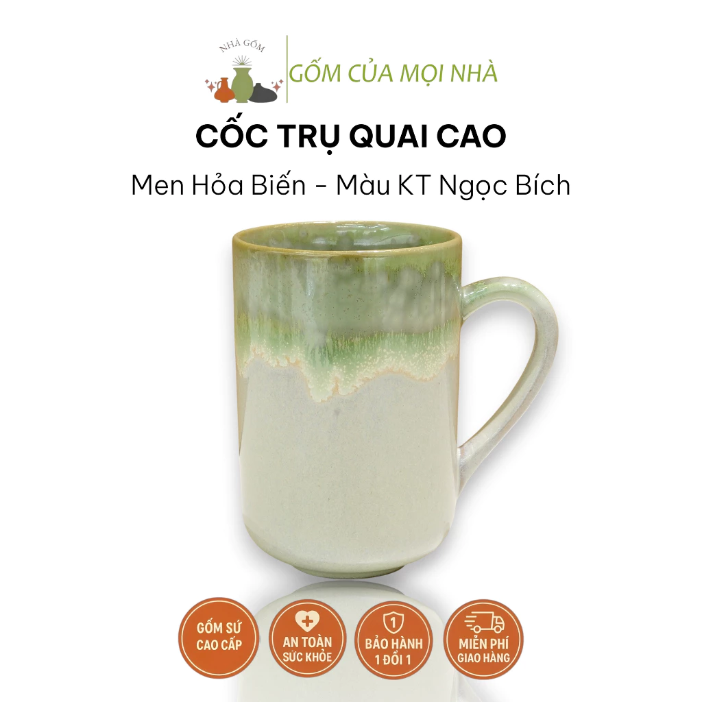 Bat Trang Flame Glaze Ceramic Office Mug 250ml - Jade Green Heat-Retaining Cup for Tea & Coffee