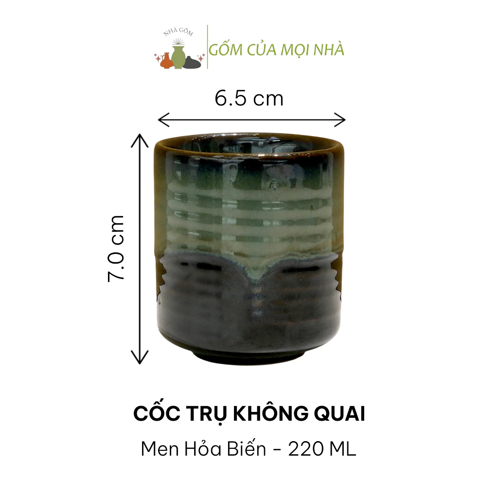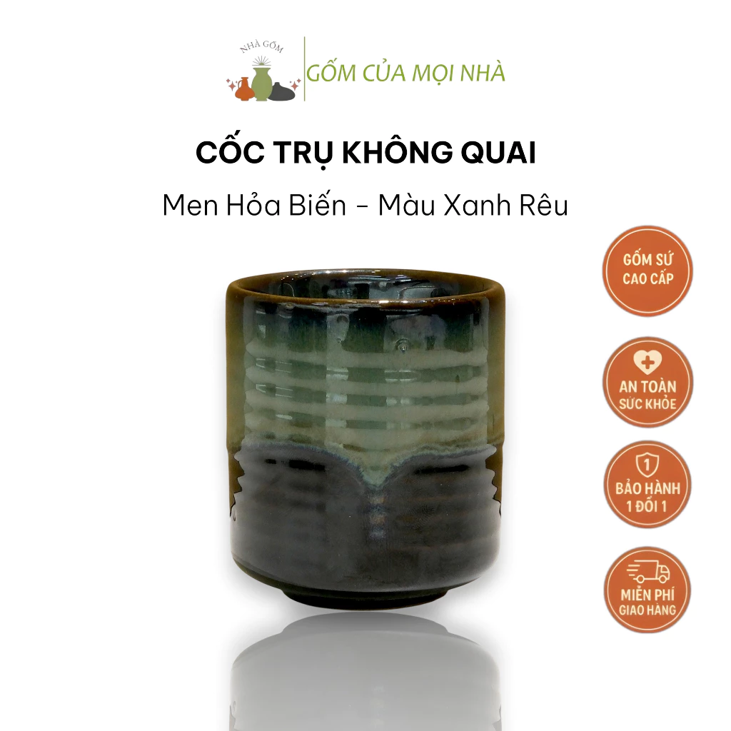Bat Trang Flame-Glazed Ceramic Mug 220ml (Moss Green) - For Water, Tea, Coffee & Gifts