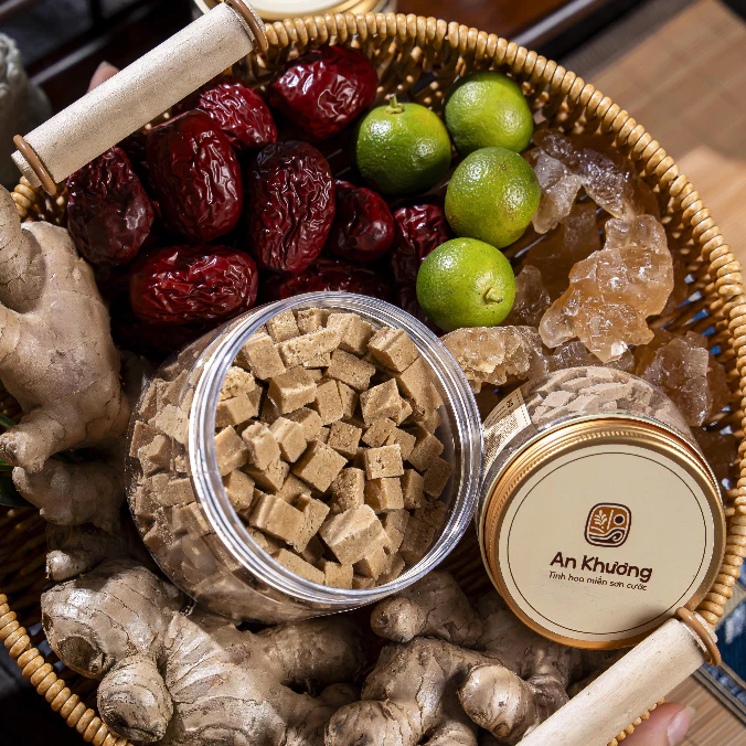 An Khang Ky Son Natural Ginger & Salted Lemon Lozenges - Mild Spicy, Soothes Cough, Cold & Menstrual Pain, All-Natural Ingredients from Vietnam
