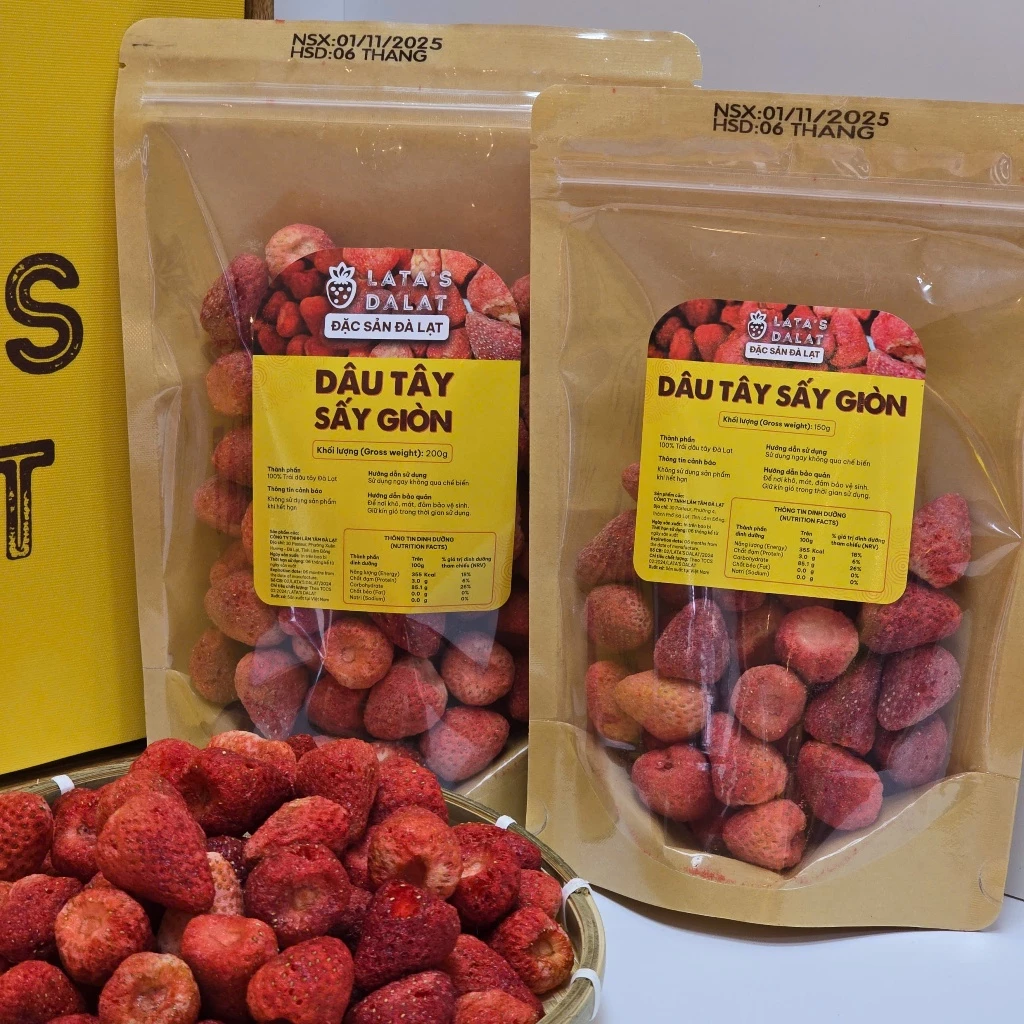 LATA's Special Crispy Freeze-Dried Da Lat Strawberry - 150g Ziplock Bag