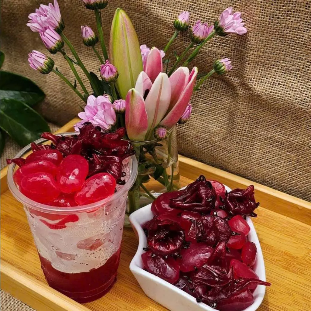 2. 味付け:水気を切った後、砂糖(氷砂糖やパームシュガーが最適)とフルーツ(パッションフルーツ、パイナップル、いちご、ライチなど)と一緒に約30分間漬け込みます。若い実なので味が素早く浸透します。