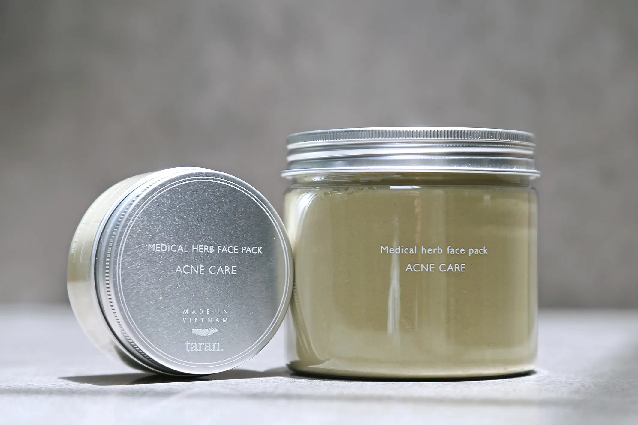 「TARAN メディカルハーブ フェイスパック アクネケア - 大容量500g」は、ベトナムの豊かな自然が育んだ厳選されたハーブと白泥を配合した、ニキビケアに特化したフェイスパックです。