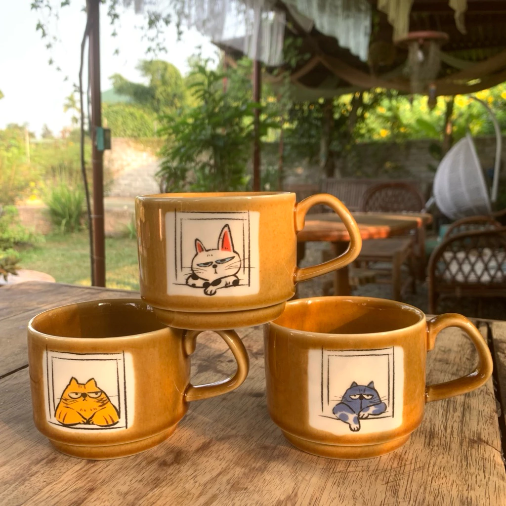 Aurahouseのマグカップは、工業製品のような光沢や派手さはありません。一目見て禅(Zen)スタイルを強く感じさせる、特徴的な素焼きの釉薬が印象的です。しっかりとした取っ手が付いており、ミニマルながらも洗練された円筒形のフォルムは、手にするたびに安定感と温かさを感じさせます。素朴で自然な美しさ、そして丁寧に作られた手仕事の価値を愛する方にはぴったりの選択です。製品名にある「猫のオーラブルー」は、この素朴な美しさに愛らしいアクセントを添え、使うたびに微笑みを誘います。