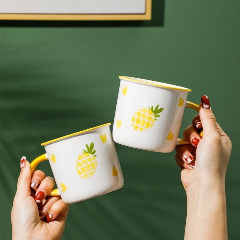 ナウの家】いちご&パイナップル柄セラミックマグカップ 350ml - お茶、水、牛乳、ギフトにもの通販・個人輸入代行販売商品