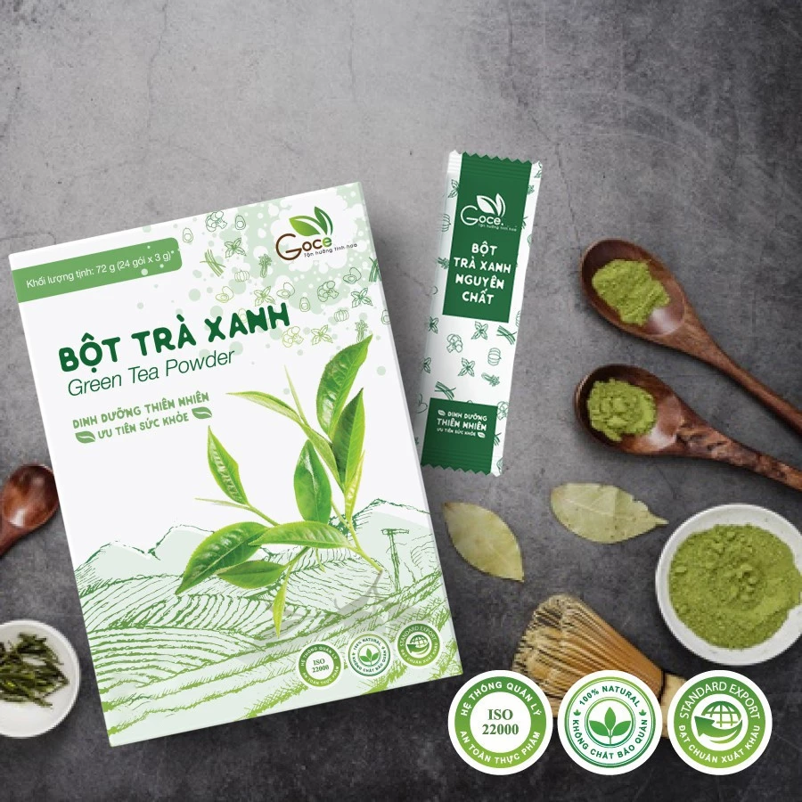 「Goce 純粋抹茶パウダー」は、東洋文化において「優雅さ」と「長寿の健康」の象徴である緑茶の価値を現代に繋ぐ製品です。ベトナムの高原地帯で丹精込めて育てられた、みずみずしい緑の茶葉の魂をそのままに、便利で現代的な形で皆様にお届けします。