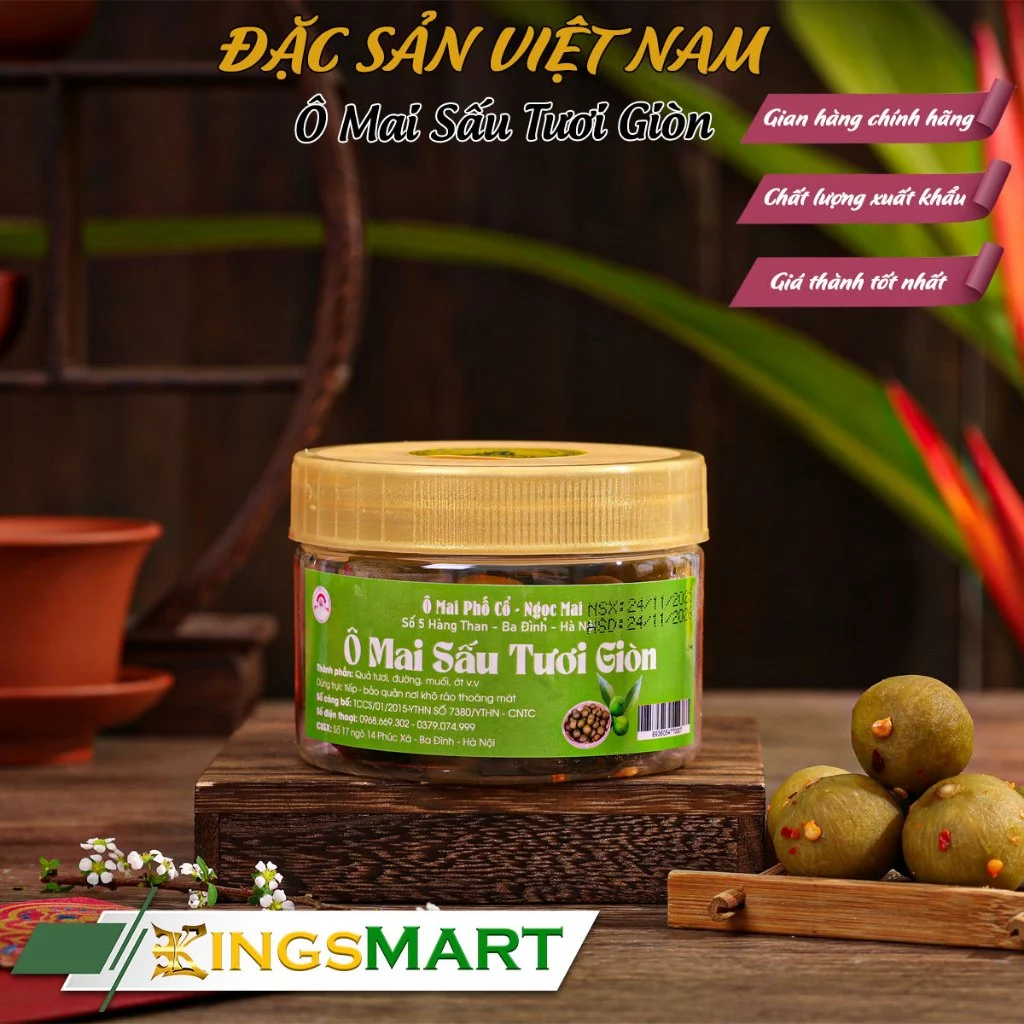 梅の砂糖漬けが冬の暖かさを感じるように、NGỌC MAIブランドの「カリカリ青サウのドライフルーツ」は、ハノイの夏の爽やかさを小さなガラス瓶に閉じ込めた、まさに明るい歌のようなお菓子です。これは単なるおやつではなく、古都ハノイの街路樹に実るサウの木が、季節の移り変わりを告げる瞬間を大切にしています。