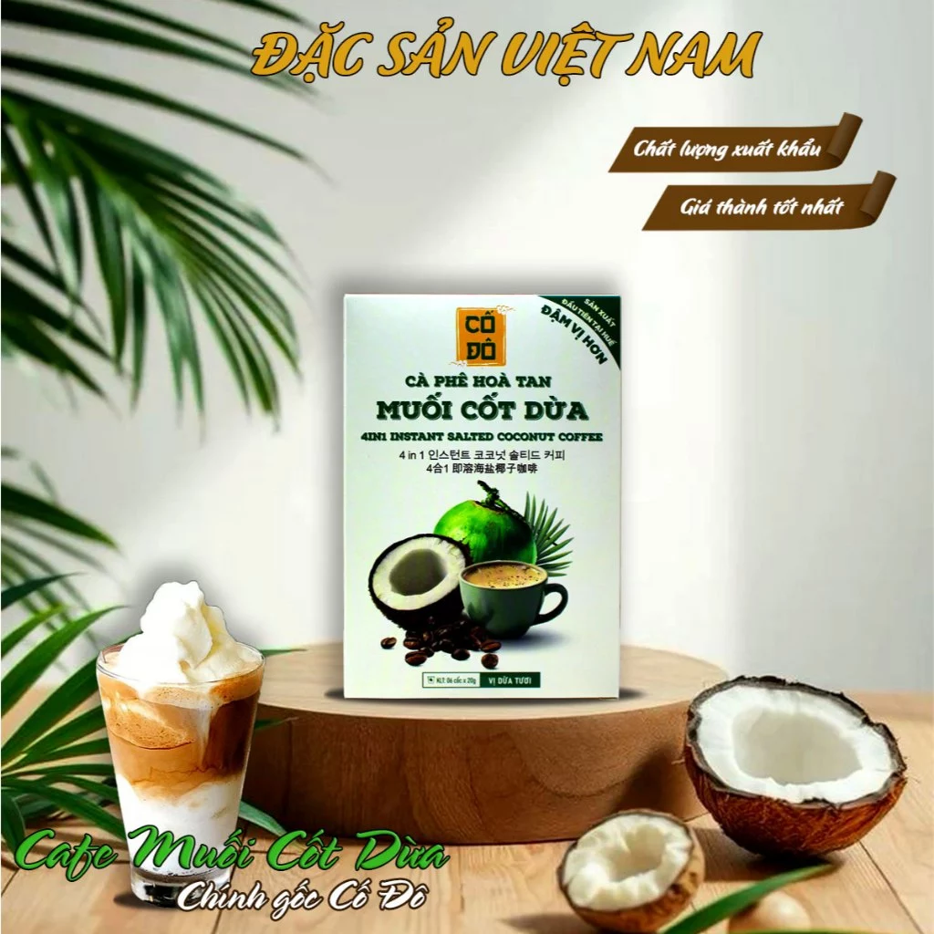 CỐ ĐÔ Hue Specialty Instant Salted Coconut Coffee - Rich & Strong Taste - Box of 6 Cups