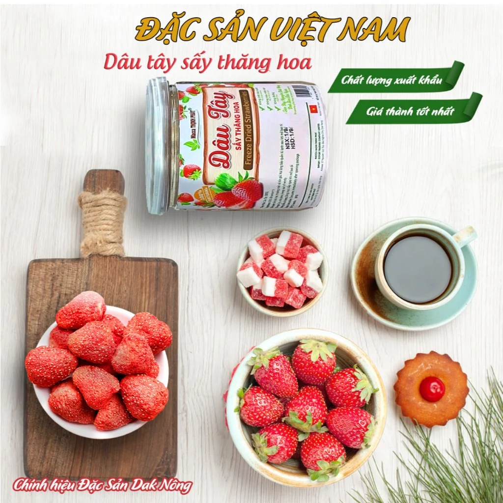 THỊNH PHÁT Freeze-Dried Strawberry 100g - Tây Nguyên Specialty - Additive-Free & Beauty Support