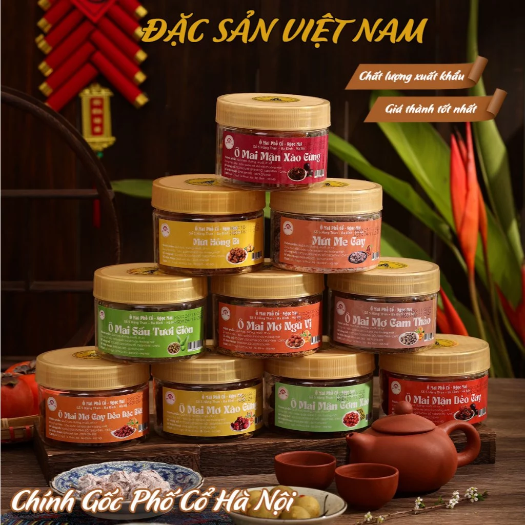 玉梅(ゴックマイ)ブランドのキンカンドライは、ハノイ旧市街の趣をそのまま閉じ込めたような、どこか懐かしく、洗練された伝統菓子です。200g入りのエレガントな瓶に詰められ、単なるおやつではなく、古き良きハノイの記憶と繊細な伝統の味をつなぐ架け橋となるでしょう。
