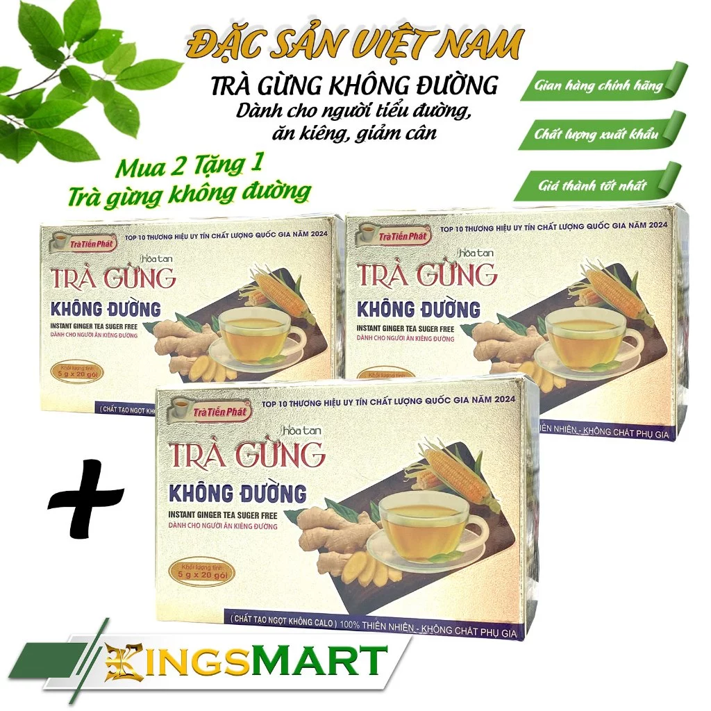 TIEN PHAT Sugar-Free Instant Ginger Tea - 100g Box (20 sachets x 5g)
