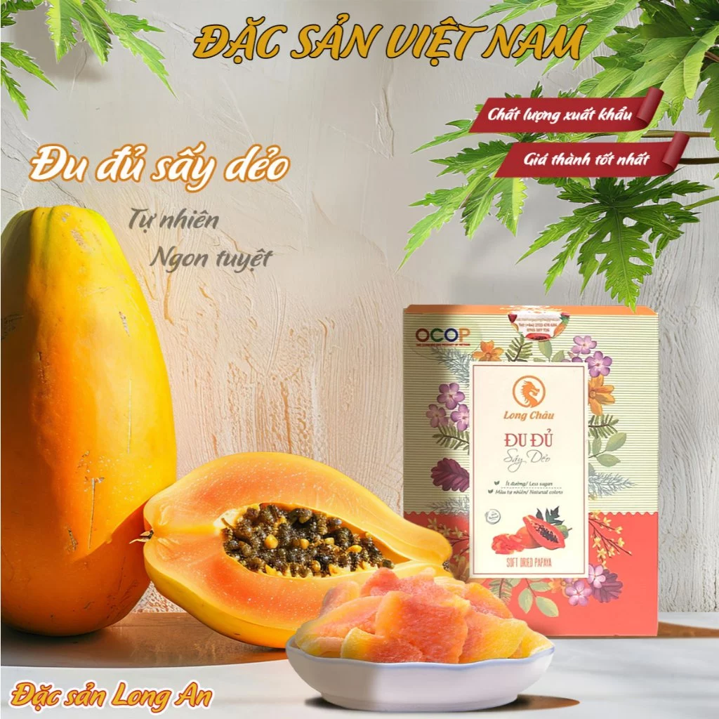 こんにちは!もしあなたが、ベトナム南部の素朴な魅力と、現代的でヘルシーな軽食を求めているなら、ロンチャウブランドの「ふわふわドライパパイヤ」が最適です。ロンアン省の特産品であるこの素晴らしいおやつについて、詳しくご紹介しましょう。ロンアン省は、太陽と肥沃な土壌の恩恵を受けた豊かな果物栽培地として有名です。ロンチャウブランドは、この豊富な原材料を活かし、絶品のふわふわドライパパイヤを生み出しました。150g入りの洗練されたパッケージは、ご自宅用のおやつとしてはもちろん、ベトナム南部の温かい心を伝える意味のある贈り物にもぴったりです。