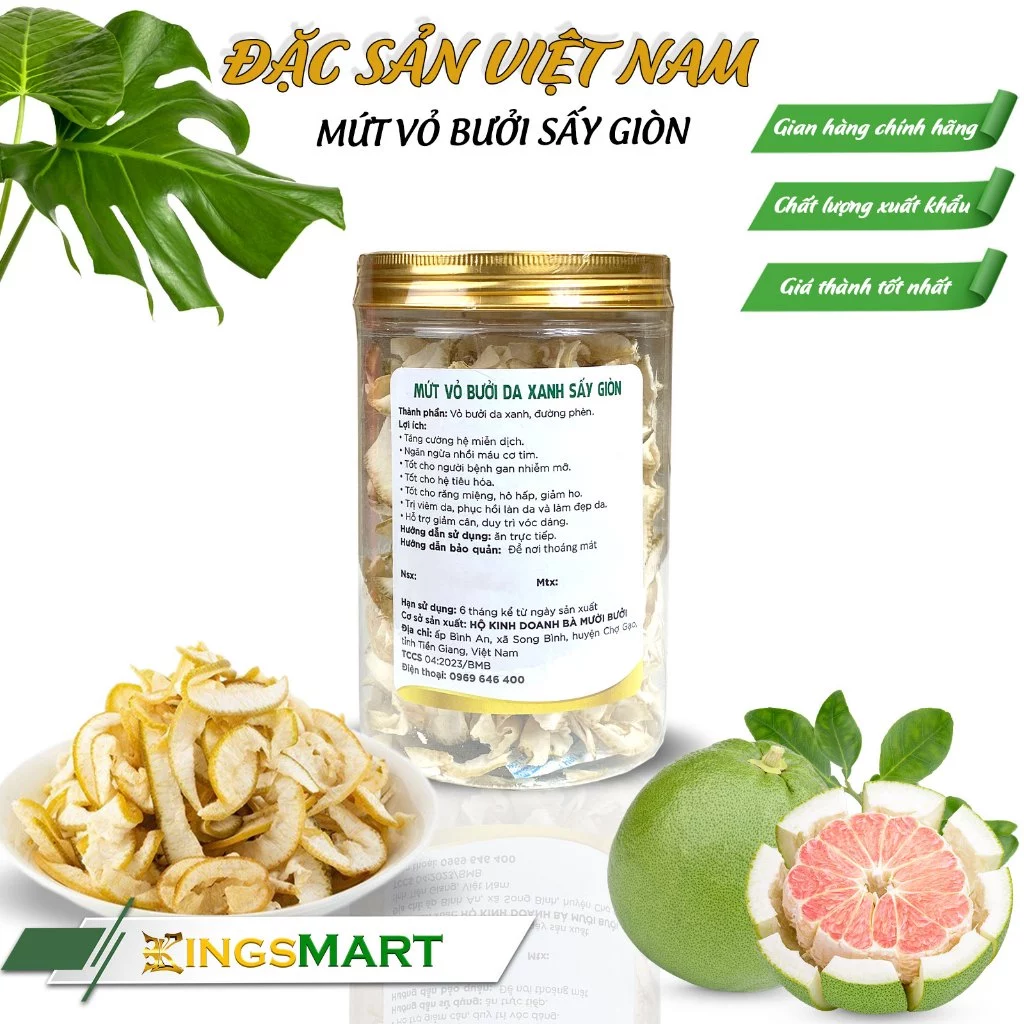 • 新鮮な青ザボン皮:地元ティエンザン省で厳選された、肉厚で精油含有量の多い青ザボンの皮のみを使用しています。白い部分と緑色の部分をバランス良く使っています。