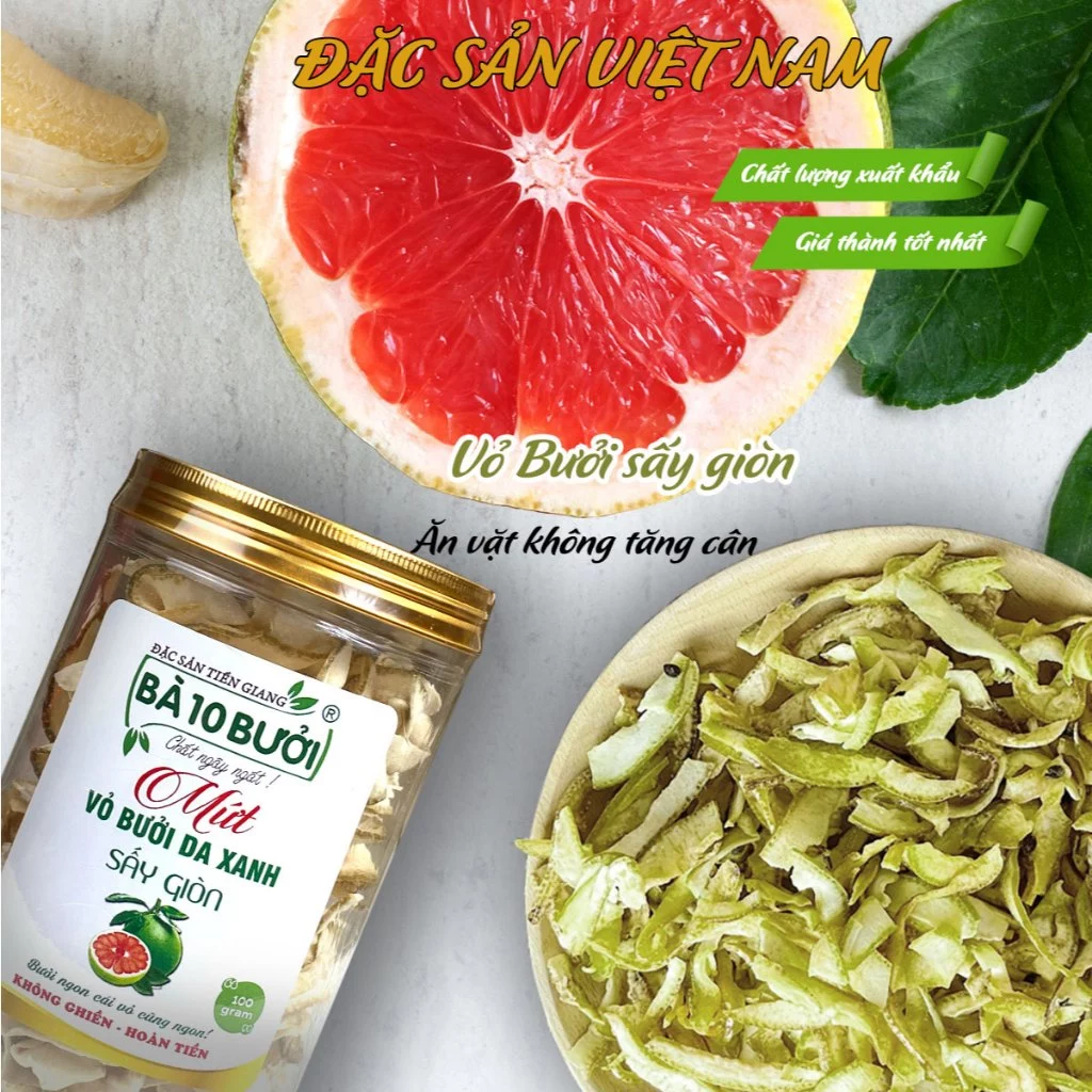 Ba Muoi Buoi Brand Crispy Green Pomelo Peel Confectionery - Tien Giang Specialty - 100g Jar