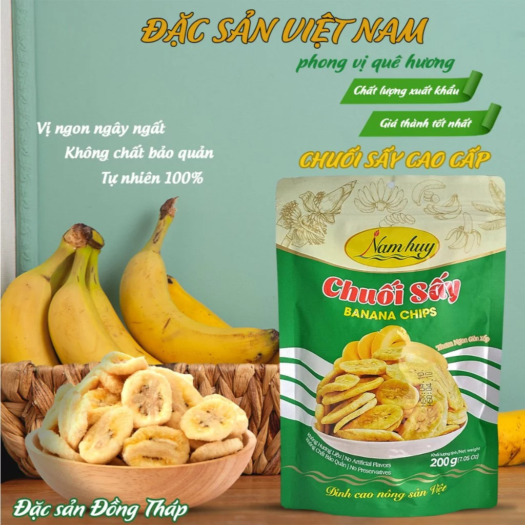 Nam Huy Brand Sugar-Free Dried Banana - Dong Thap Specialty - 200g Bag